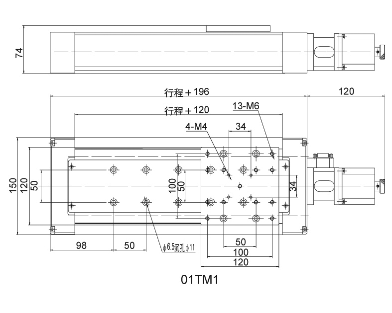 Мощные моторизованные линейные подвижки 01TM1