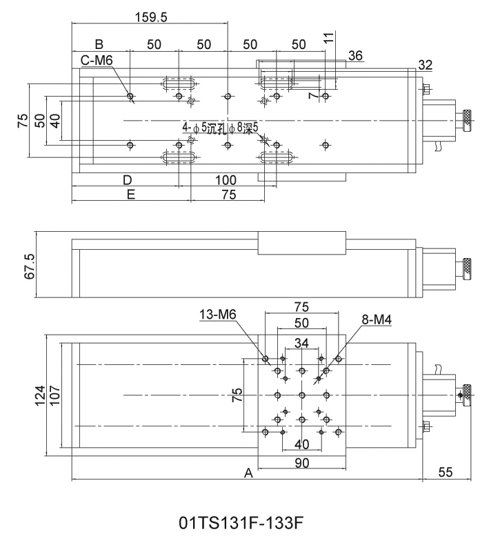 Normal-type моторизованные линейные поступательные подвижки с защитным кожухом 01TS131F-133F