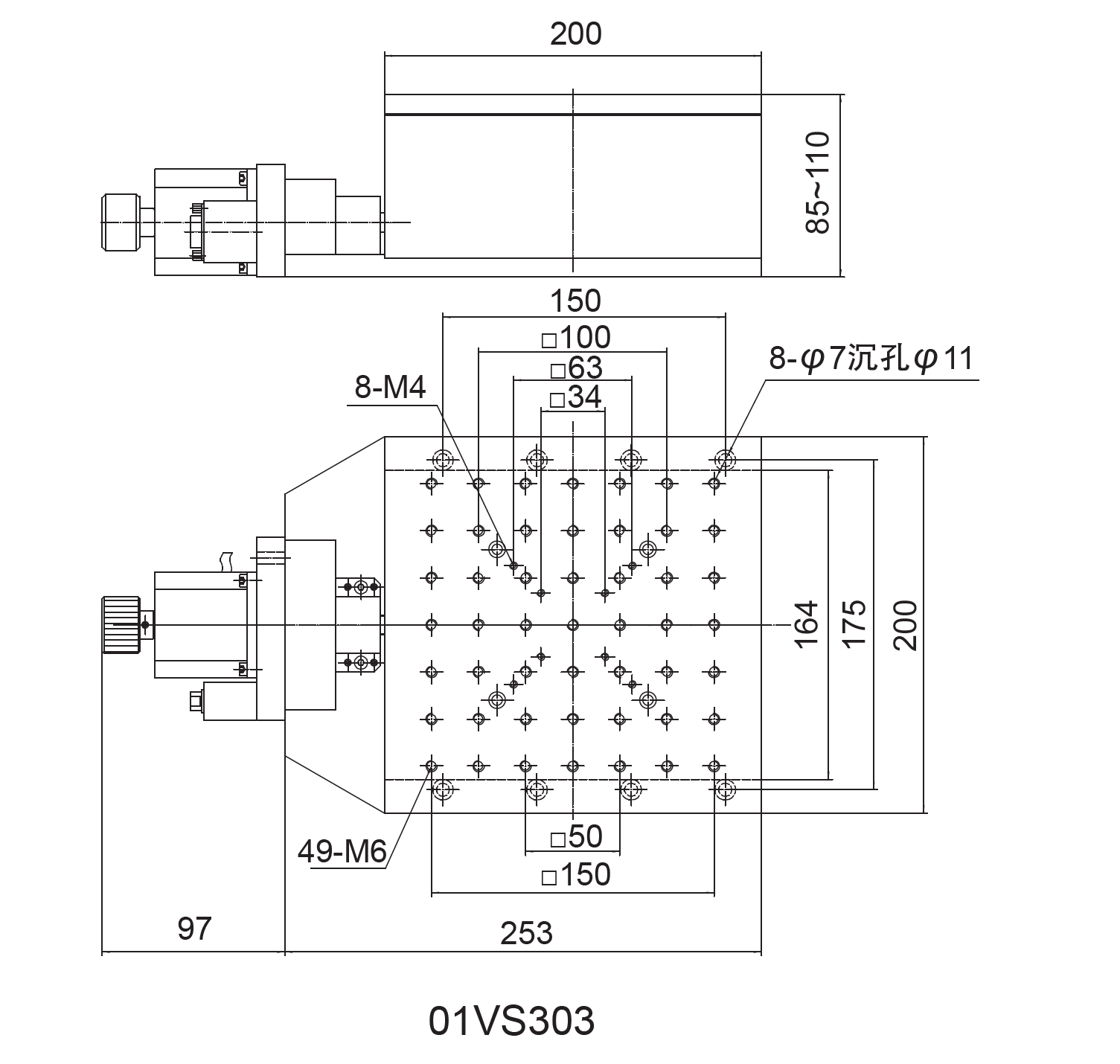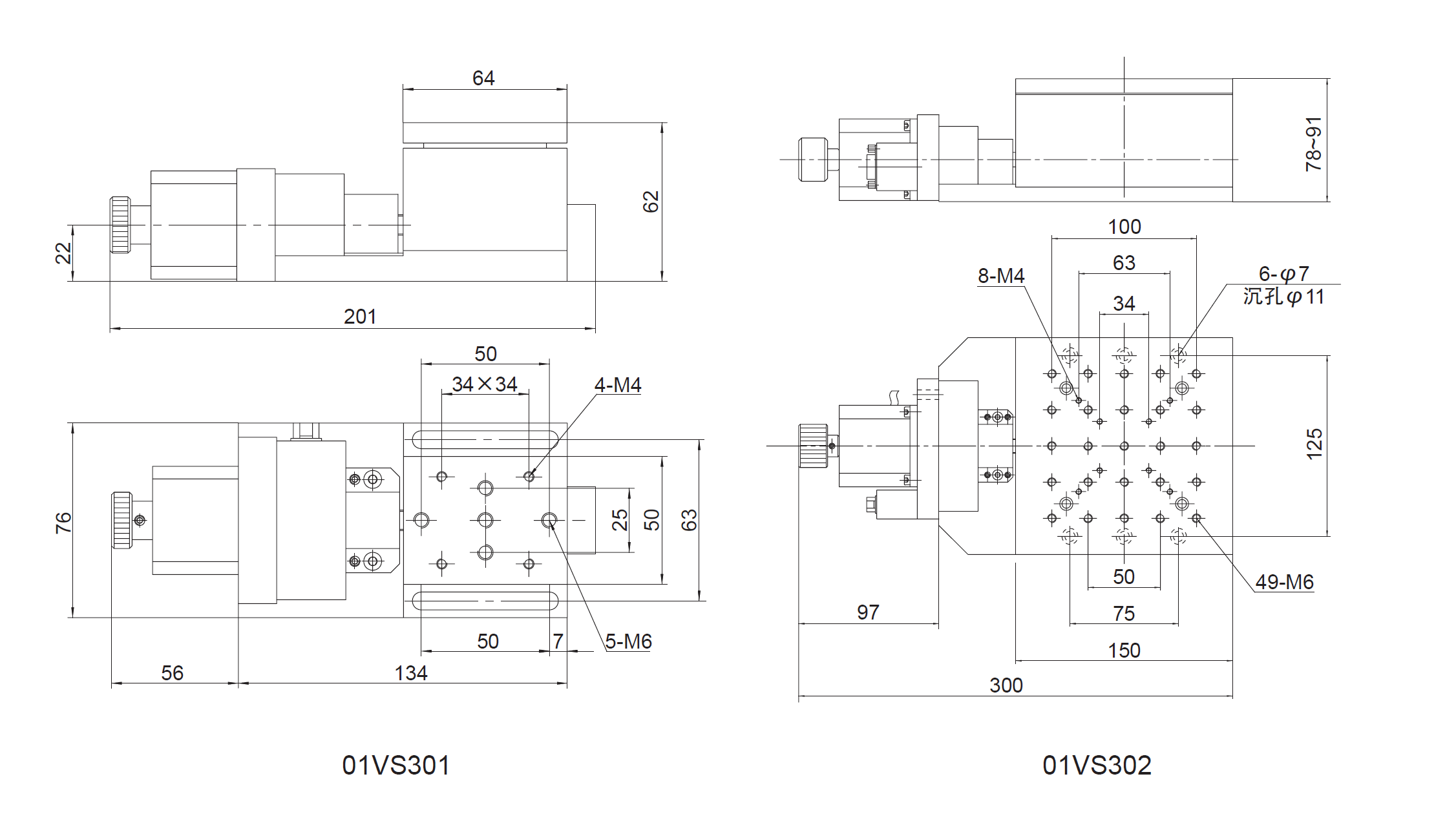 Моторизованные вертикальные поступательные подвижки 01VS301/01VS302/01VS303