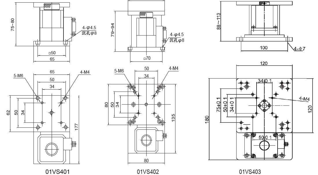 Моторизованные вертикальные поступательные подвижки 01VS401/01VS402/01VS403
