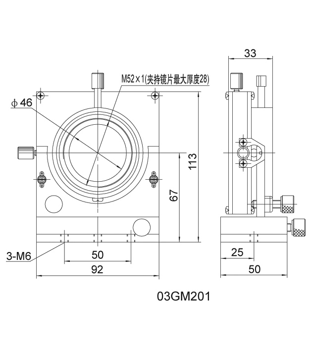 • Специальная конструкция, ускоряющая и упрощающая регулировку и фиксацию Tx; точная регулировка: винт с мелкой резьбой M4×0.3 для настройки Ty и Tz, пара винтов с мелкой резьбой M6×0.25 для регулировки θy и θz;