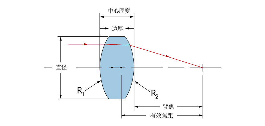| Диаметр | Фокус | Задний фокус | R1 | Толщина в центре | Толщина по краям | Модель без покрытия | AR 250~400 нм |