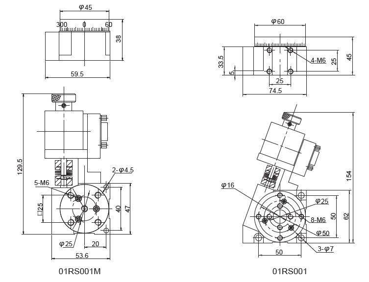 Моторизированная поворотная подвижка 01RS001M/01RS001/01RS002/01RS003/01RS004